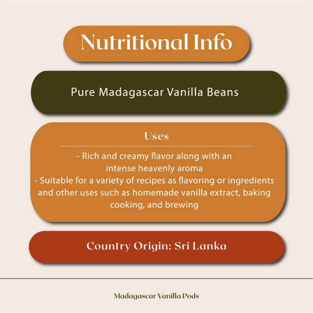 Spiced Quay's Madagascar Vanilla are ethically grown and cured in Madagascar. Considered the 'queen of the crops', these premium vanilla pods are First Quality NFN, which means they are 'non-split, non-blemish black' and of the highest quality. Being plump and moist, trust these pods to infuse bold aromas and flavors to any dish.