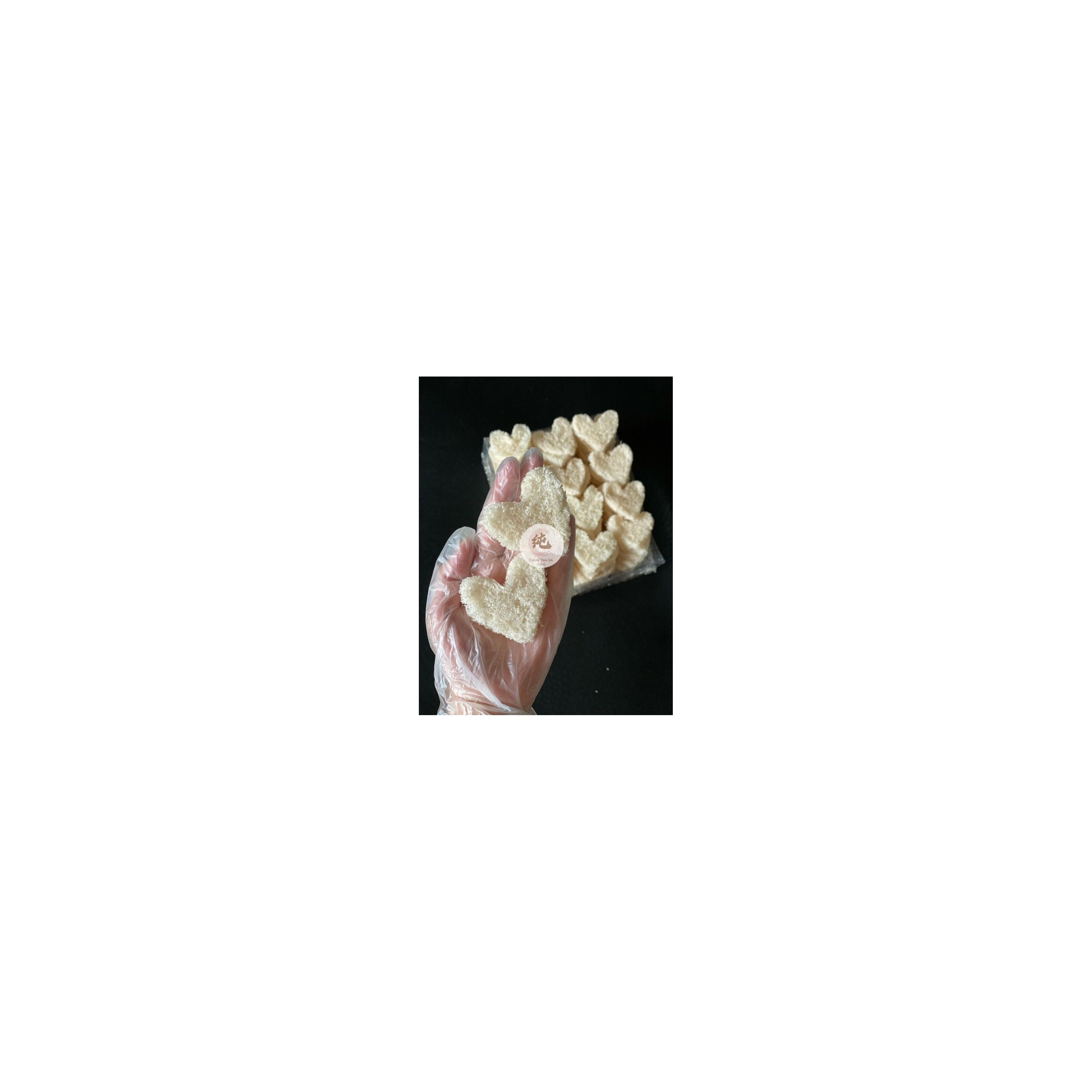 "Heart Shaped Bird's Nest (燕饼) are made from the loose fallen pieces when hand-picking of bird’s nest. It is compressed and make into different shapes such as the one below. Nutritional value are the same and it is often made into bottled bird’s nest and drinks. Each piece is good for 1 serving.