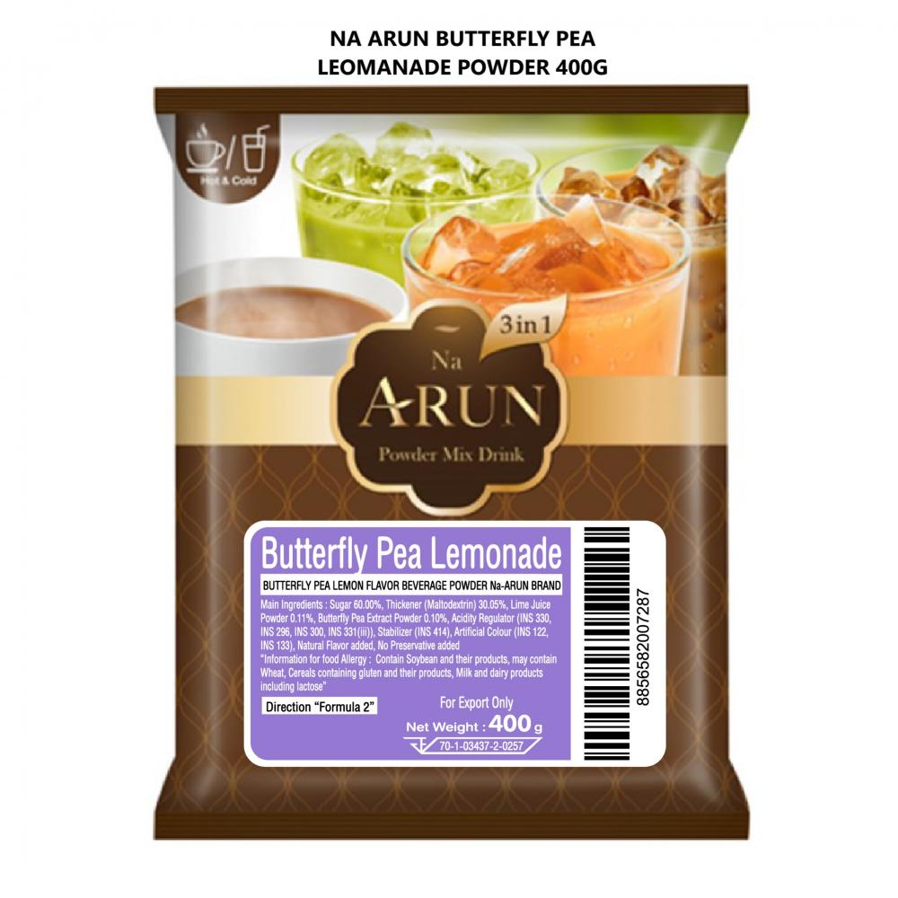 Na Arun is a 3 in 1 Powder Mix, which is a convenient way to make Butterfly Pea Lemonadein a bulk, whether for home or for food service, e.g for Drink Dispensers. Butterfly Pea Lemonade offers a refreshing lemon flavoured drink that is sweet and sour in flavour. It can be used for all kinds of occasions whether you run a restaurant, cafe, stall, food truck or online selling. Can be served hot or cold. Mixing instruction is on the packaging.