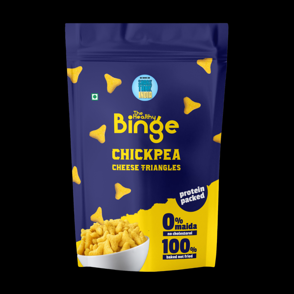 The extra crunchy Healthy Binge triangles are the ideal healthy snack for a bingeing session. 100% baked, 0% cholesterol and with no added sugar, this healthy snack is Gluten-Free and Rich in Protein. The yummy and addictive cheesy flavour keeps you wanting for more with every bite. Ingredients :Bengal Gram Flour, Jowar Flour, Rice Flour, Dehydrated Vegetable Powder, Milk Solids, Chili Powder, Blackpepper Powder, Sunflower Oil, Cheese Powder, Ajwain, Salt, Spices,, INS 551, Natural flavouring substances