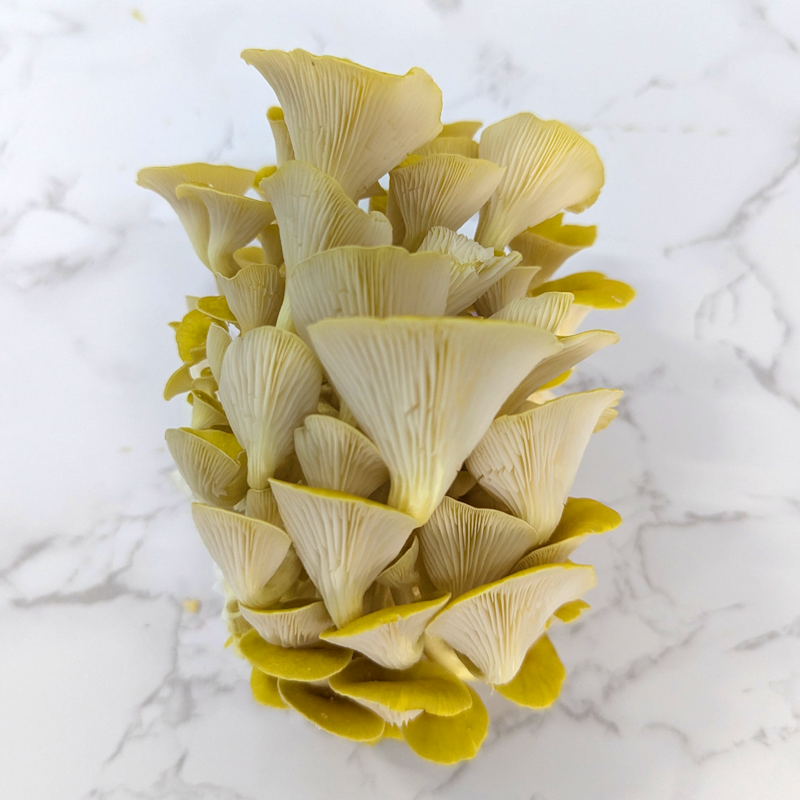 Golden Oyster mushrooms are a culinary marvel, loved for their striking golden-yellow caps and cascading, delicate clusters. Their soft, velvety texture and elegant appearance make them an eye-catching centerpiece in any dish, perfect for adding a gourmet touch to your cooking.