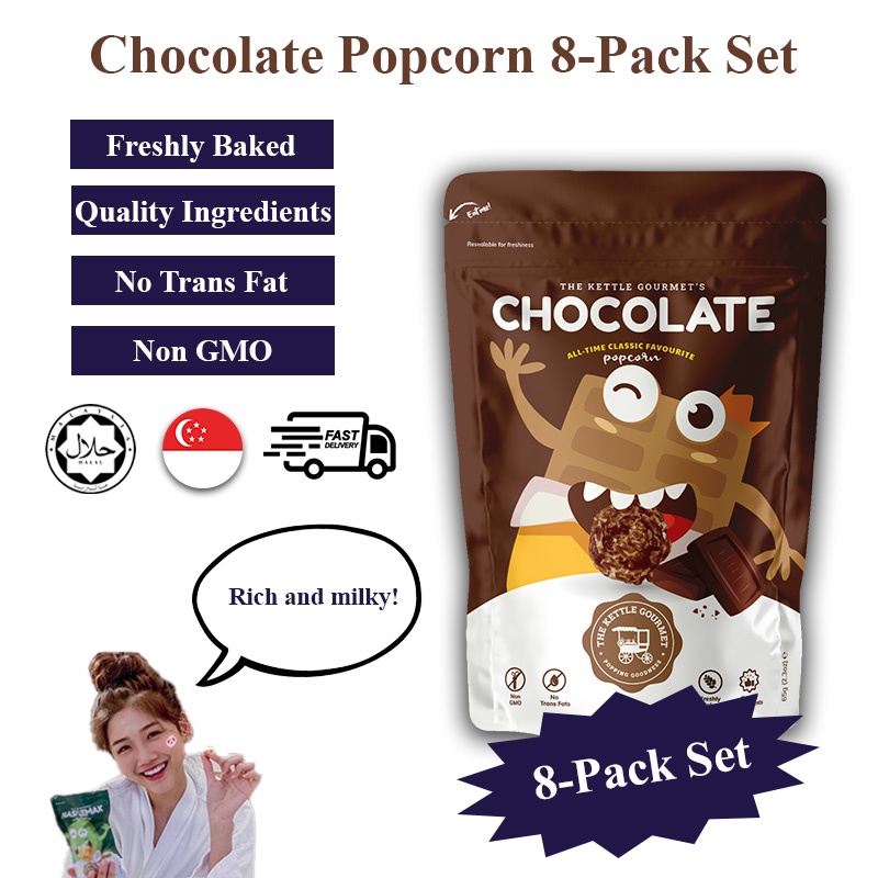 Coated in chocolate glaze, these chocolate popcorns are designed for chocolate lovers like you, for a whole new popcorn experience. Enjoy its chocolaty taste in every bite!Chocolate popcorn is a classic flavour that has been around for years. It's a favourite among both kids and adults, and it's perfect for any occasion. Whether you're looking for a tasty treat to enjoy at the movies or a festive snack to share at a holiday party, chocolate popcorn is always a hit.