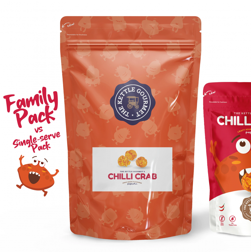 For a party of five or an indulgence of one. Enjoy our Chilli Crab popcorn any way you want. The king of all crab dishes. Chilli Crab is among Singapores well-known culinary inventions. Loved by Singaporeans, the secret is in the sauce a tangy flavour combined with the succulent flesh of the stir-fried crab.